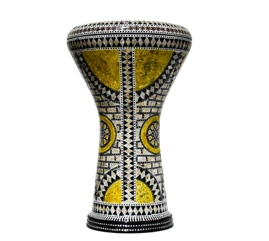 Gawharet El Fan Classic 17/17.5 inch Drum Darbuka Doumbek Tabla Mother of Pearl (Yellow Castle)