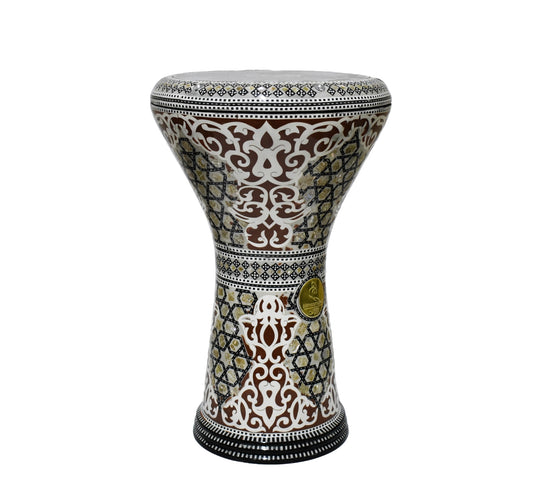 Gawharet El Fan Classic 17/17.5 inch Drum Darbuka Doumbek Tabla Mother of Pearl (Brown Silhouette)