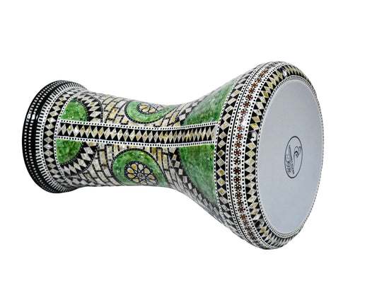 Gawharet El Fan Classic 17/17.5 inch Drum Darbuka Doumbek Tabla Mother of Pearl (Green Castle)