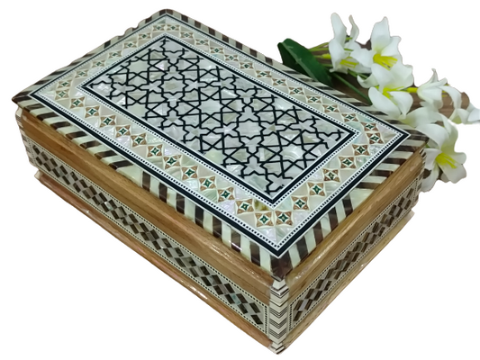 Wood Jewelry Box Inlaid mother of Pearl Egyptian Handmade (8" X 5.2" x 2.4" inch)