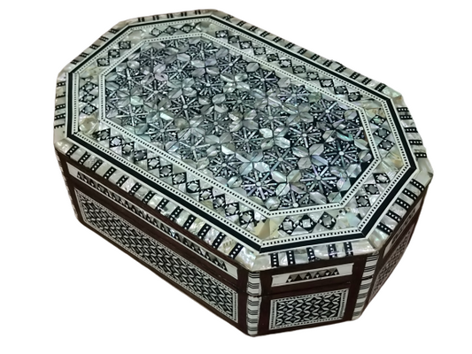 Wood Jewelry Box Inlaid mother of Pearl Egyptian Handmade (8" X 5.2" x 2.8" inch)