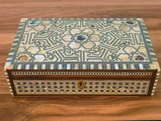 Wood Jewelry Box Inlaid mother of Pearl Egyptian Handmade (11" x 7.2" x 5.2" inch)
