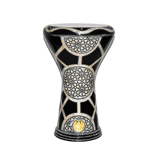 Gawharet El Fan Classic 17/17.5 inch Drum Darbuka Doumbek Tabla Mother of Pearl (Black Sun)