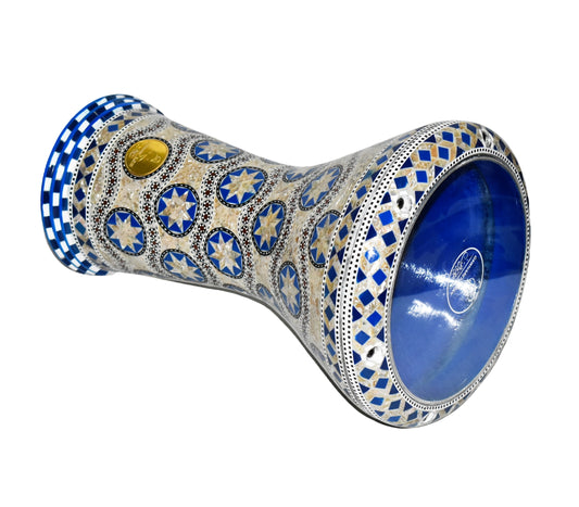 Gawharet El Fan Classic 17/17.5 inch Drum Darbuka Doumbek Tabla Mother of Pearl (Blue Stars)