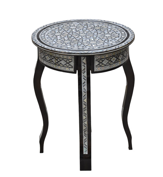 Mother of Pearl Moroccan Side Corner Wood Round End Coffee Brown Table
