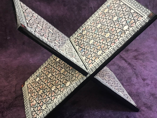 Islamic Muslim Quran Holder Stand Beech Wood Inlaid Mother of Pearl Egyptian Handmade (m01)